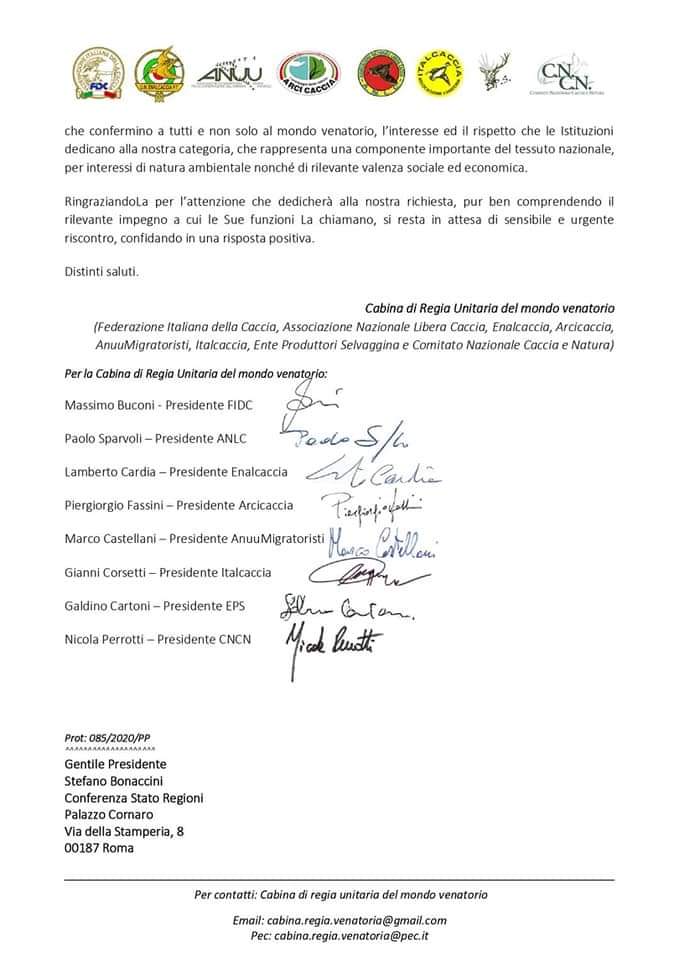 La Cabina di Regia Unitaria del Mondo Venatorio chiede un incontro a Conte e Bonaccini per le difficoltà del mondo venatorio