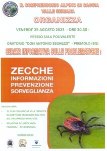 I cacciatori del Comprensorio Alpino di caccia Valle Seriana, in provincia di Bergamo, organizzano una serata informativa sulle problematiche relative per prevenire e sorvegliare in caso di una presenza delle zecche.